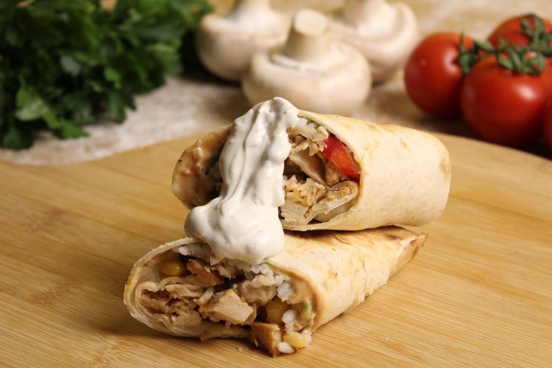 lipie, orez, ceapa, ardei gras, ulei masline, sos rosii, piept pui, salata verde, fasole rosie, porumb, sos chilli 400g