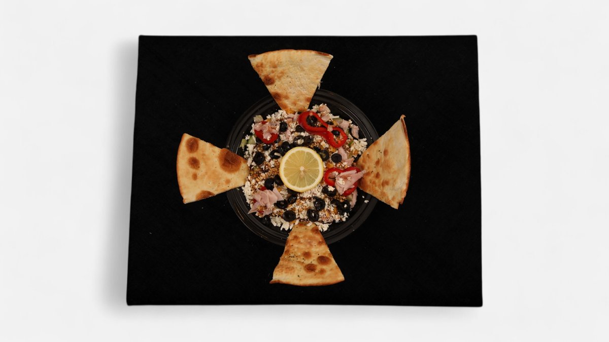 foccacia, varza, salata verde iceberg, castraveti, telemea, sunca, porumb, masline, lamaie 520g