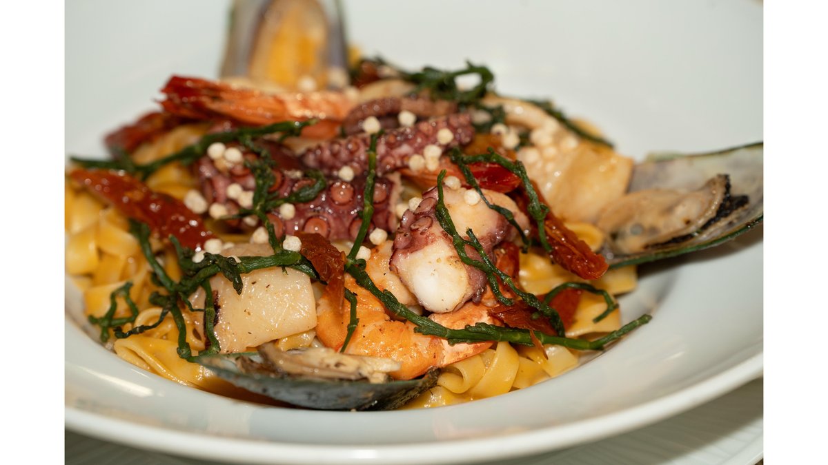 Tagliatelle ,ciuperci de padure ,pasta de trufe, smântâna lichida,demiglace,usturoi,patrunjel,muguri de pin și parmezan.365G