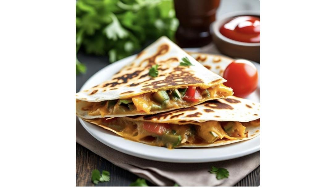Quesadilla de pui, cartofi prăjițI, sos de rodie Poza cu titlu informativ