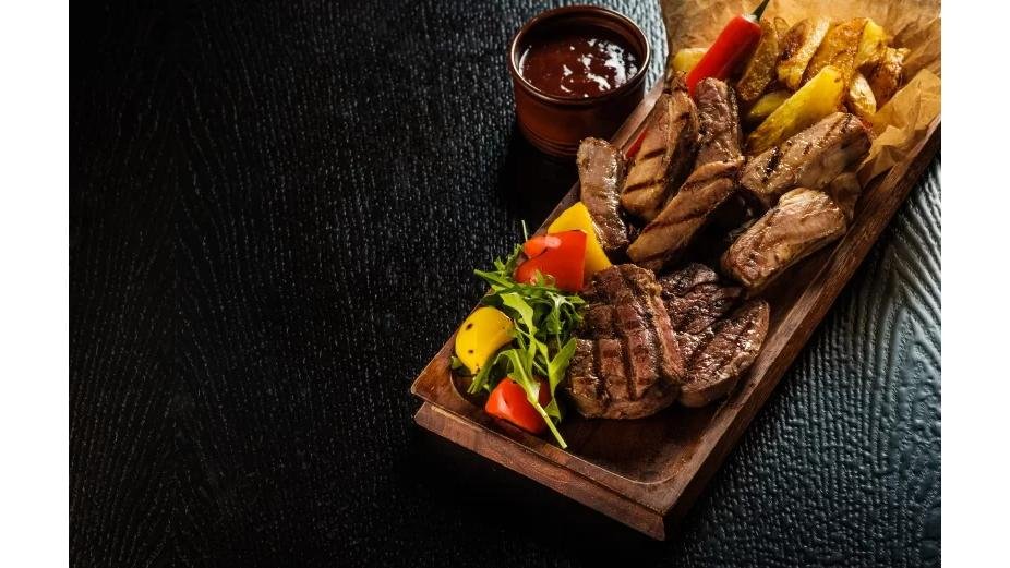 Pulpă de pui la grătar, piept de pui în stil arăbesc ( piept de pui mărunțit, condimente kebab), carnat la garnița, 1 șnițel de pui, 1 ceafă de mangalița la grătar, 1 chiftea plescaviță sârbească, crispy de pui 4 buc, 2 papanașI cu smântână șI dulceață, cartofi pai, sos usturoi, sos de rodie, 1 salata de murături, 1 salată de varză proaspătă Poza cu titlu informativ