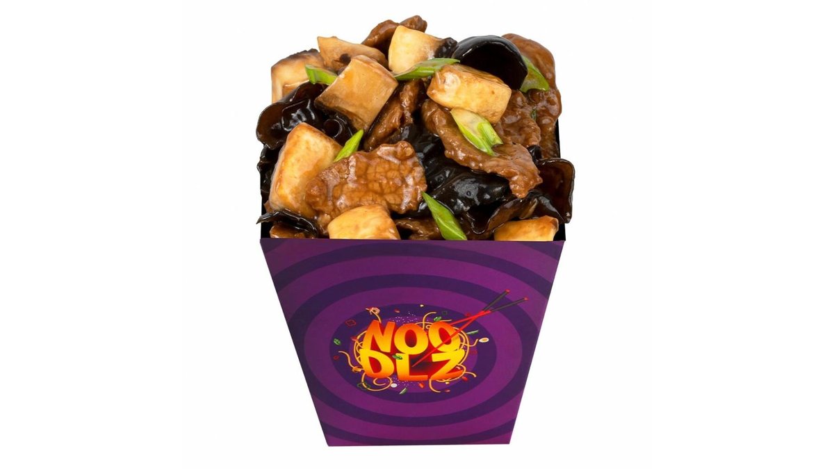 Orez 200 g / noodles 200 g + toping vita la alegere (vita iute cu legume 200 g/ vita cu ciuperci 200 g / vita cu urechi de lemn 200 g / vita pe plita incinsa 200 g) = 400 g