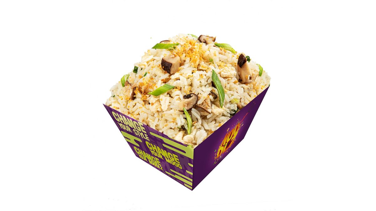 Orez 215 g (orez bob lung, orez jasmine), legume 20 g (mazare (produs congelat) , porumb (produs congelat) , morcov (produs congelat) , ciuperci negre, ceapa), mix condimente si oua 15 (sare, weijing, usturoi, oua). (250 g)