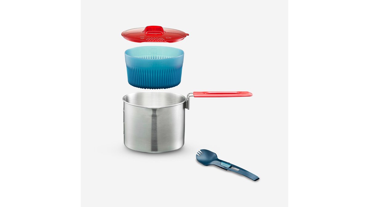 Set de gătit 500 camping din inox + antiaderent - 2 persoane - 15 elemente