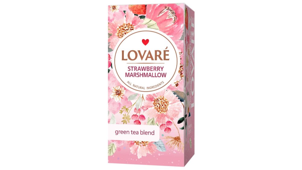 Amestec de ceai verde, fragute si petale de albastrele Lovare Strawberry Marshmallow, 24 pliculete