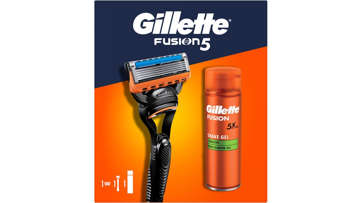 Set pentru cadou Gillette Fusion 5: aparat de ras, 1 bucata + gel de ras, 200 ml