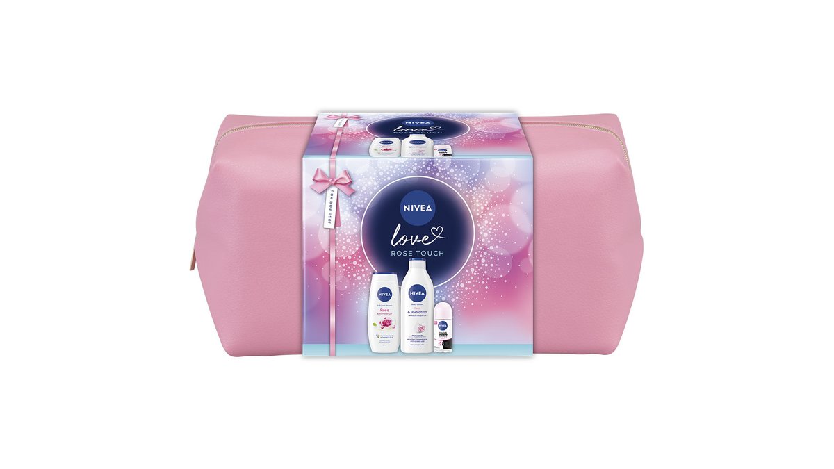 Set pentru cadou Nivea Rose Touch: lotiune de corp 250 ml, gel de dus 400 ml si deodorant roll-on 50 ml