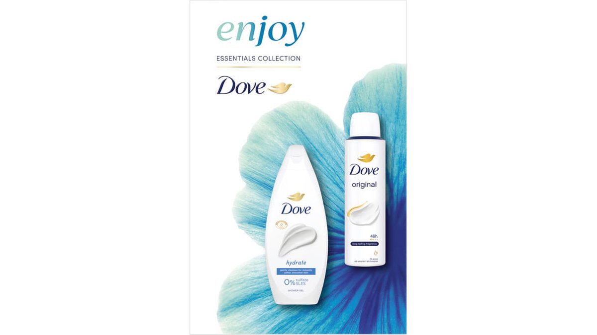 Set pentru cadou Dove Nourish: gel de dus, 225 ml + deodorant spray, 150 ml