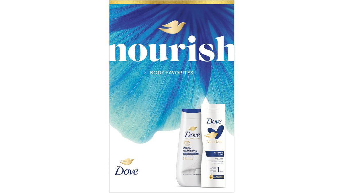 Set pentru cadou Dove Nourish: gel de dus, 225 ml + lotiune de corp, 250 ml