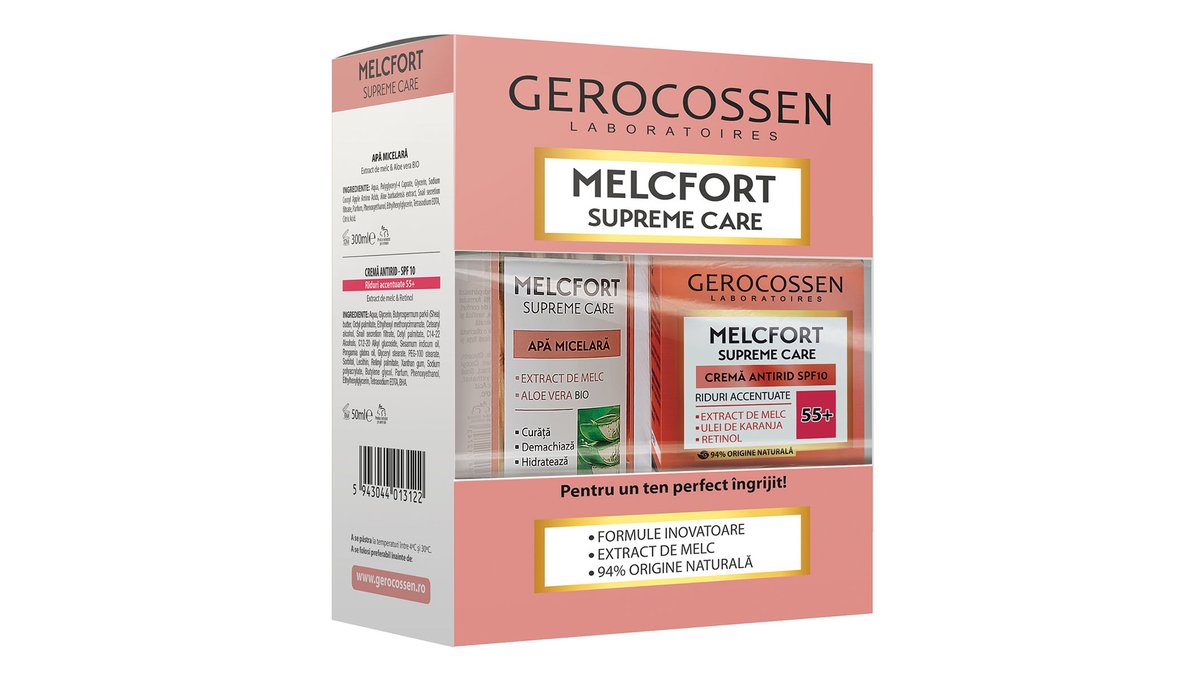 Set pentru cadou Gerocossen Melcfort: crema antirid 55+, 50ml si apa micelara, 300ml