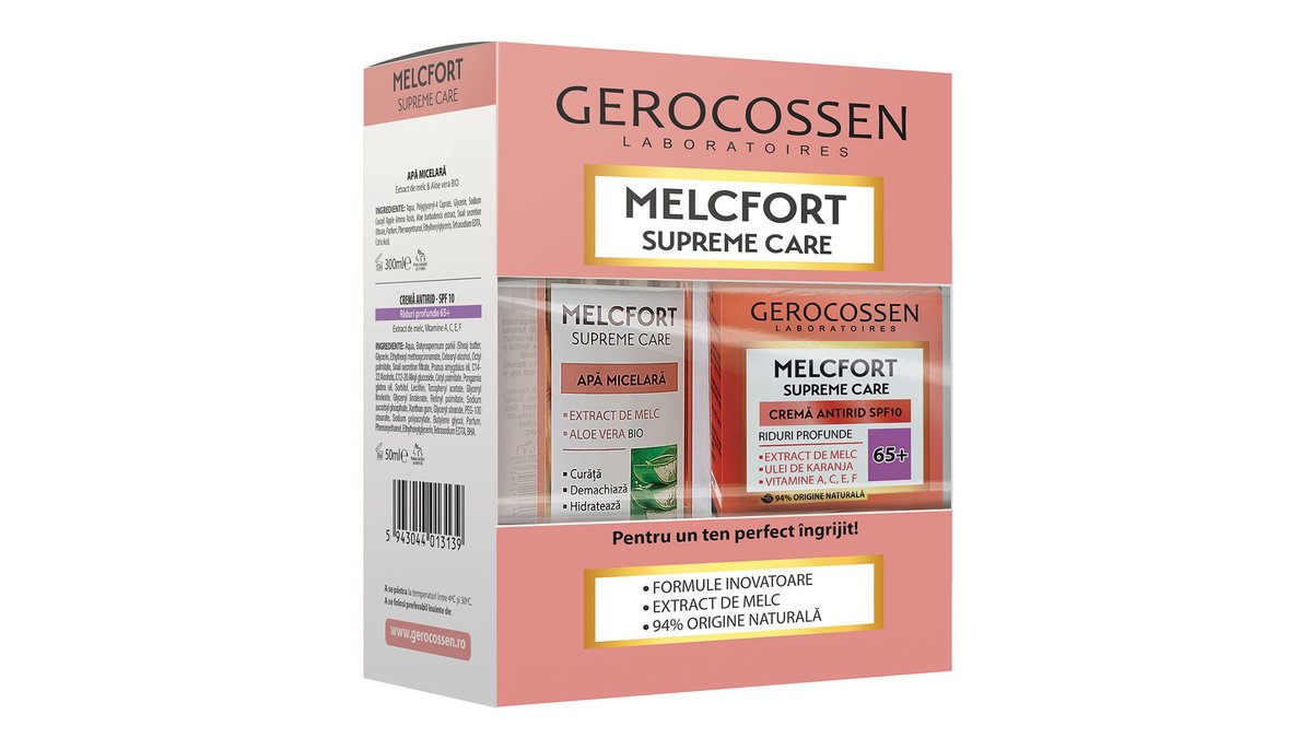 Set pentru cadou Gerocossen Melcfort: crema antirid 65+, 50ml si apa micelara, 300ml
