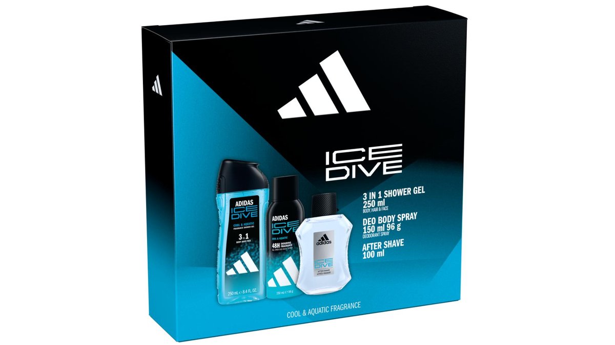 Set pentru cadou Adidas Ice Dive: After Shave, 150 ml + Deodorant Body Spray, 150 ml + Gel de dus, 250 ml