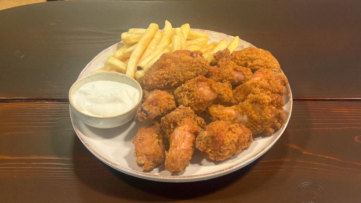 Meniu 10 aripioare pane cu cartofi și sos de usturoi