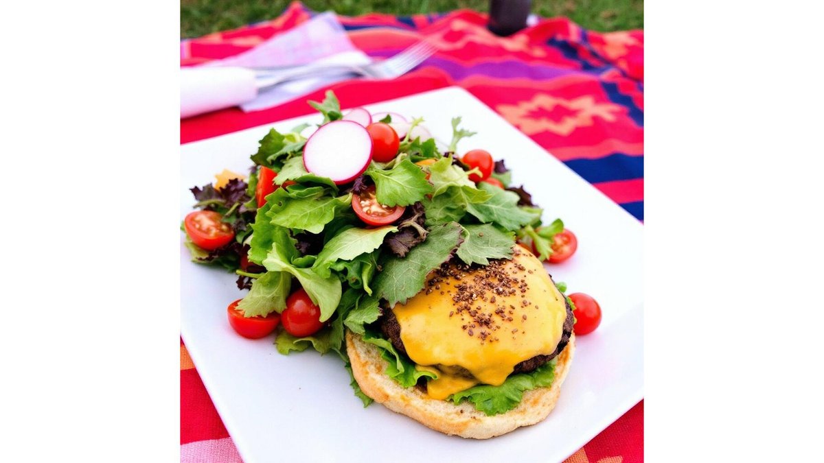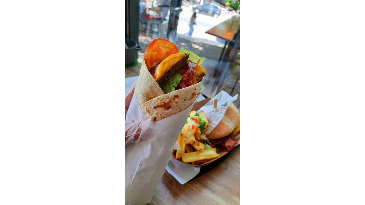 snitel vegetal 100g*, lipie 80g,mix salata 50 g,cartofi 40g,sos sweet chilli 50 g,sos tartar 50g, roșii 40g,castraveti 40g, branza cheddar 20g
