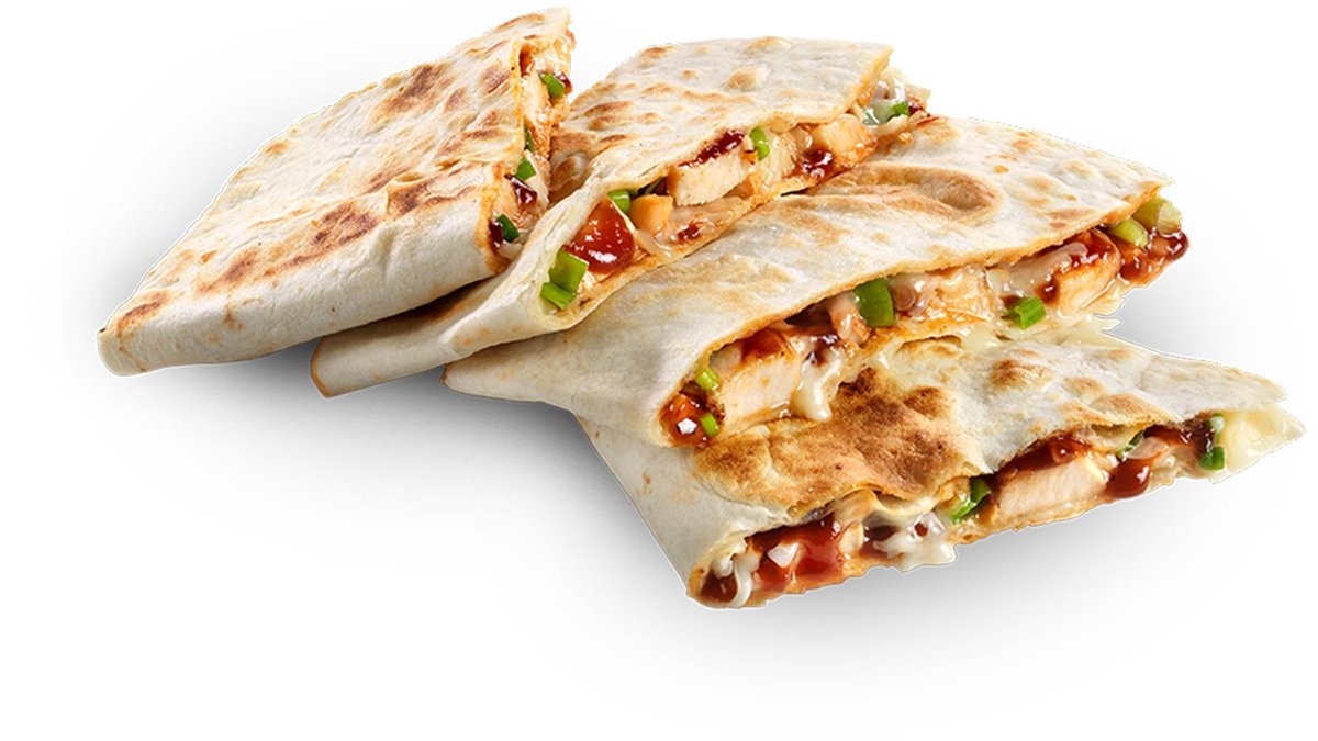 tortilla(60g) cu carne de pui/porc/vegetal/pui crocant (100g) , mix mozzarella cu brânză ceddar (80g) ) , cartofi prăjiți , porumb ceapa rosie , 1 sos la alegere 50g