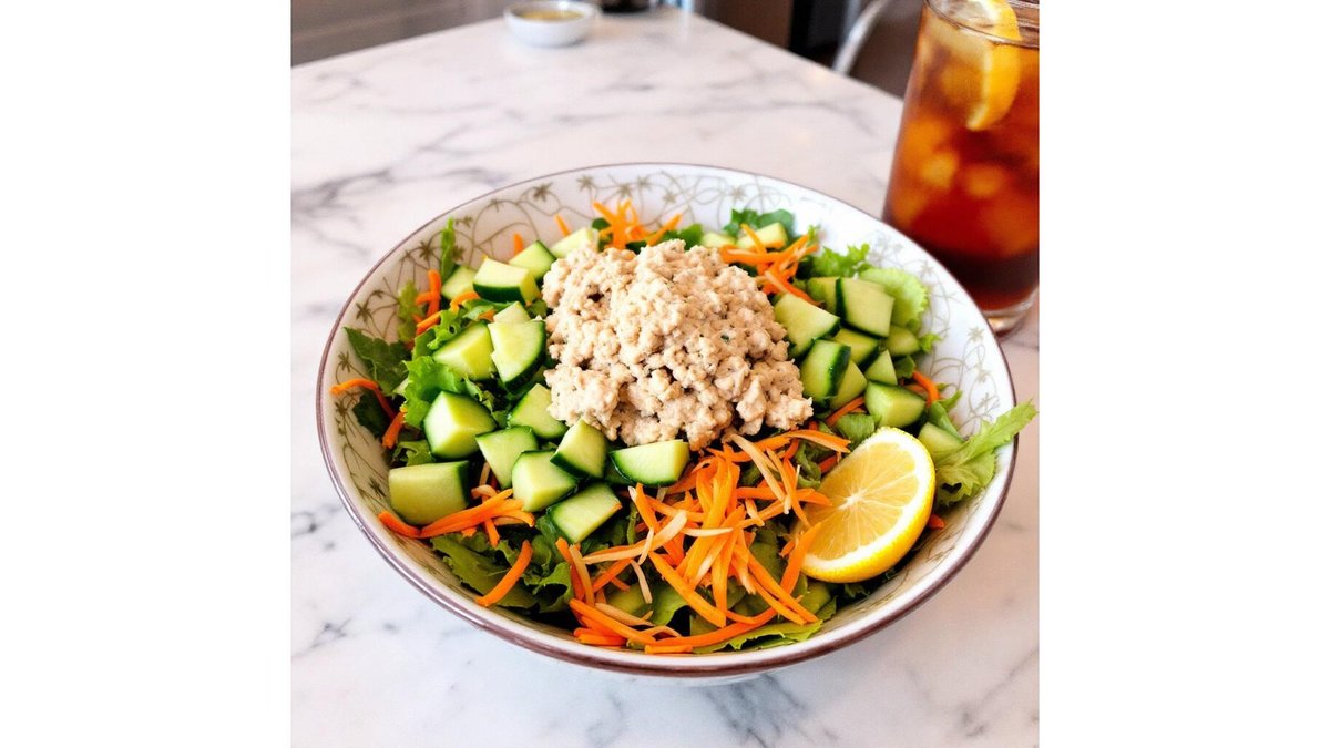 Mix de salată, rosii, castraveti, boabe rodie, dressing de rodie, ton, parmesan,crutoane de casa,seminte dovleac,fulgi de ceapa 320 g