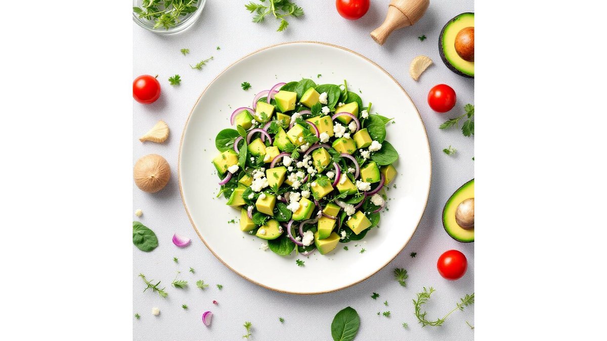 Mix salată, avocado, mix semințe, rodie, fulgi ceapă, crutoane integrale de casă, germeni praz, dressing