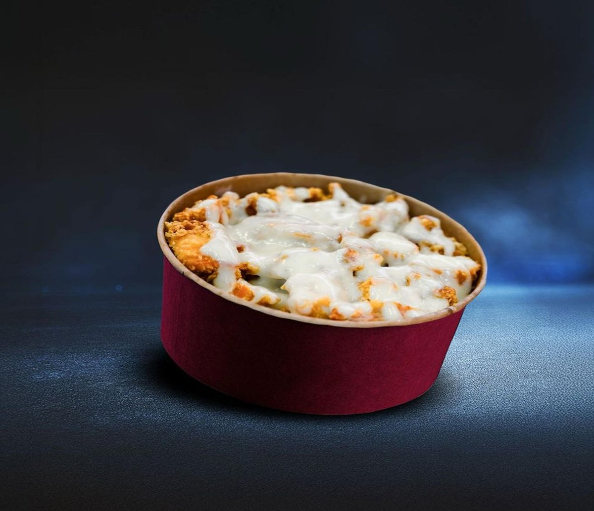 3 chicken fingers, cartofi prăjiți/orez la alegere, sos mayo cheddar - 400g