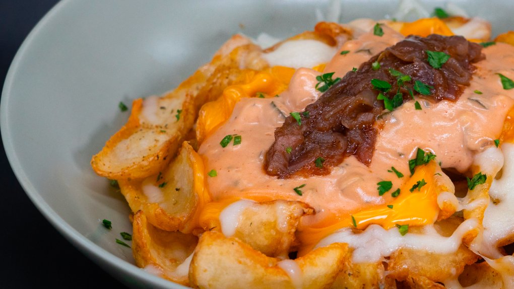 Cartofi dippers, mozzarella, cheddar, sos animal style, ceapa caramelizata, patrunjel -330g
