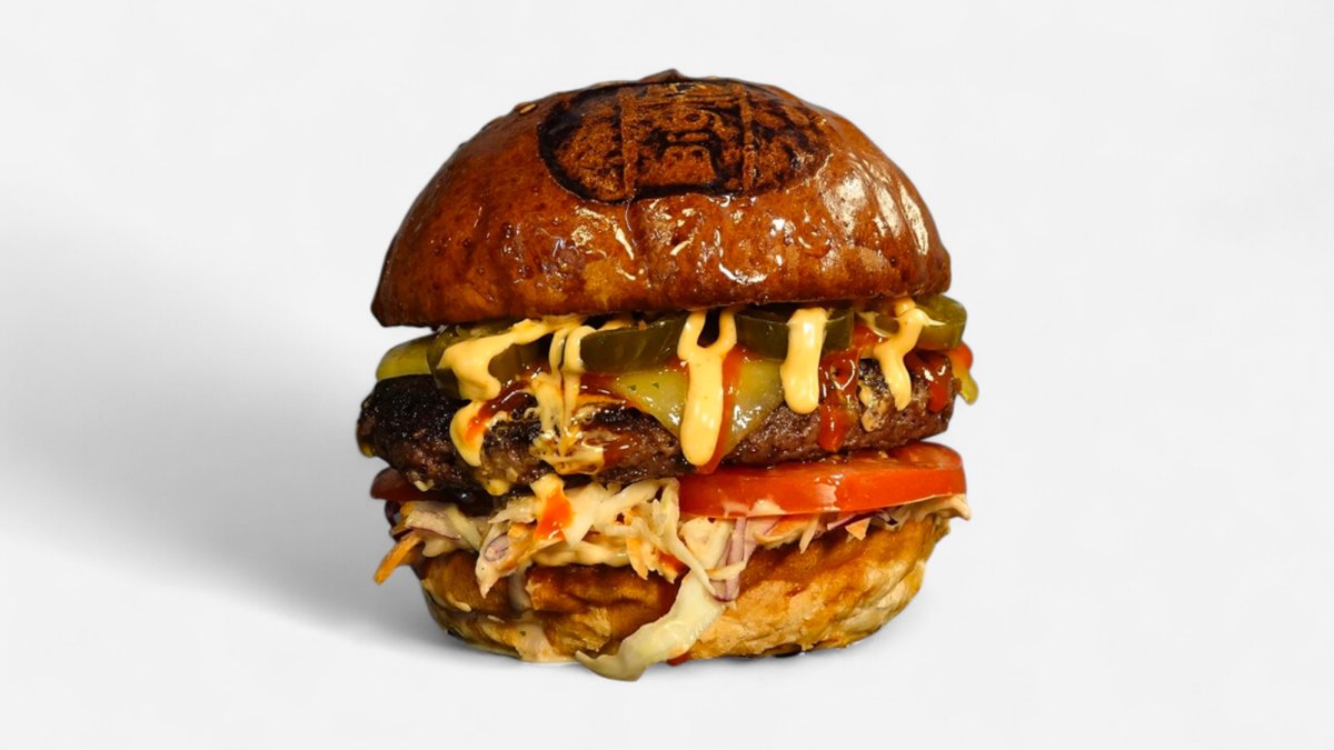 Pain brioche, antricot de vita, branza cheddar x2, salata coleslaw, chorizo, rosie, jalapeno, sos spicy mayo (370g)