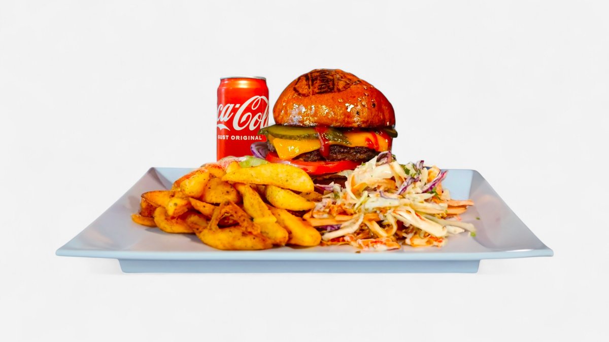 Full Combo-burger,cartofi, salata coleslaw, băutura si desert