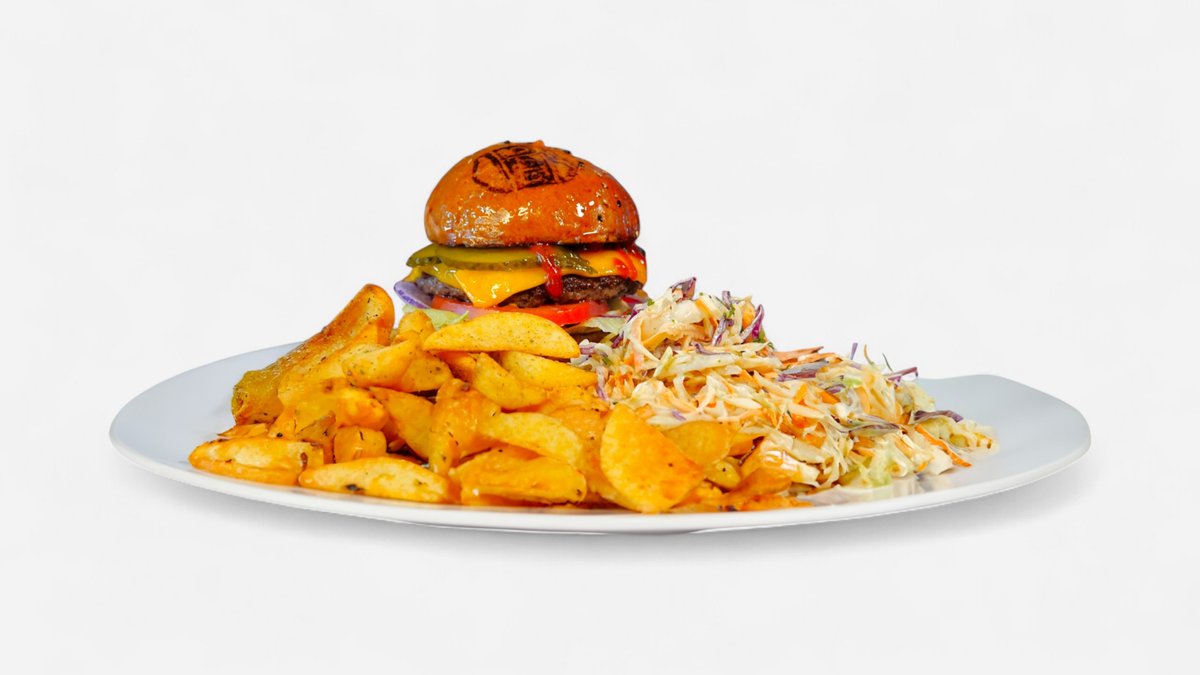 Burger, salata Coleslaw & Cartofi Wedges sau Dippers.