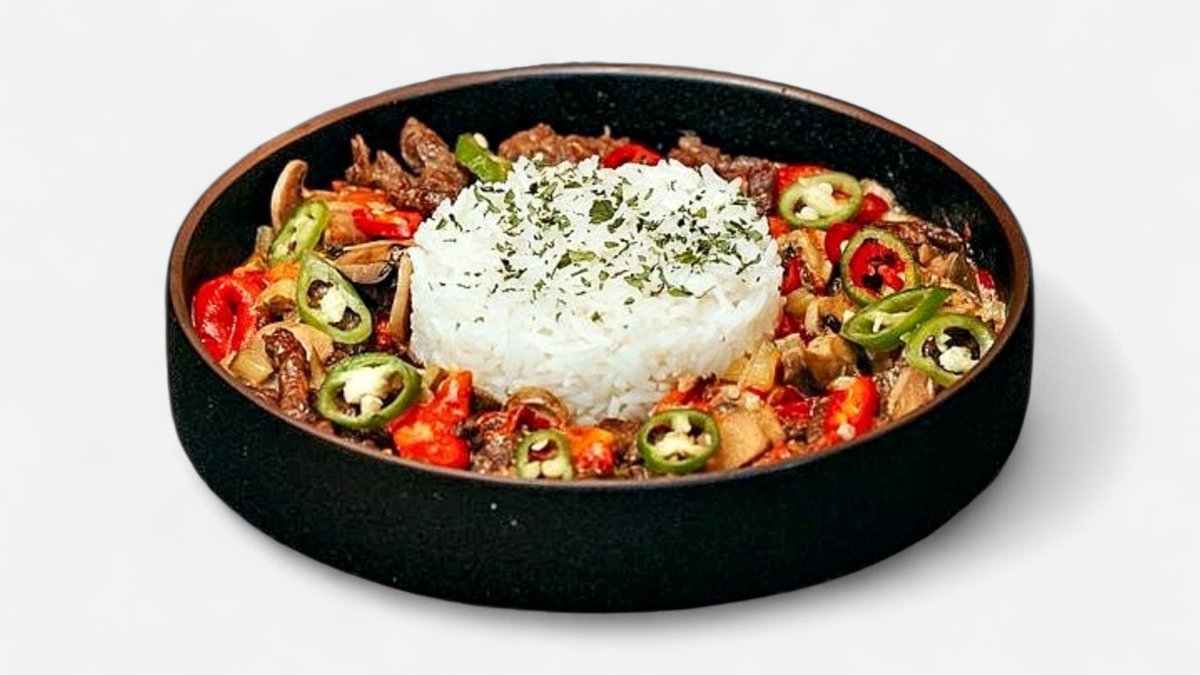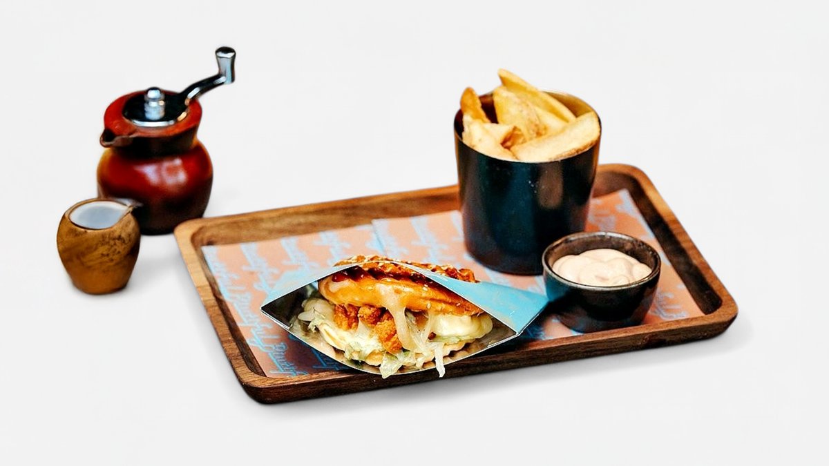 Burger din ceafă de vită (100 g), cheddar (20 g), jalapeño (15 g), maioneză de casă (10 g), ceapă deshidratată (2 g), salată iceberg (40 g), sos Sriracha (10 g), chiflă burger (80 g), castraveți murați (20 g), cartofi dippers (170 g), sos sweet chilli (50 g). Gramaj total: 500 g