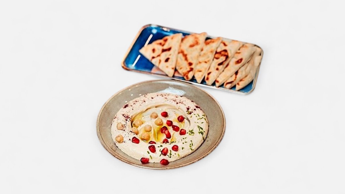HUMMUS WITH POMEGRANATE WITH GREEK PITA