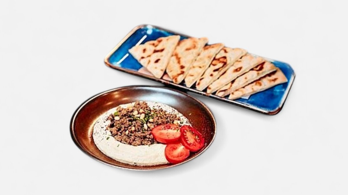 Hummus(120g) cu carne de vită(80g) și pită grecească(54g) 254g