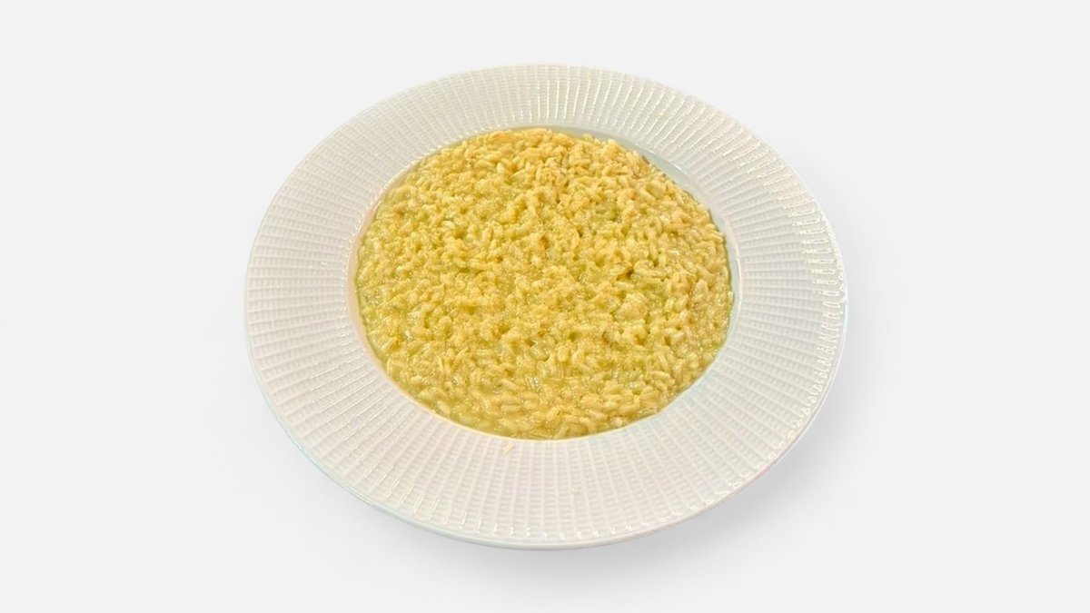 Orez arborio(120g), Parmigiano Reggiano*(Maturat35+luni)(30g), unt(10g), ceapă albă(20g) 220g