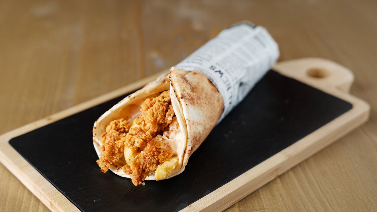 Un deliciu crocant si suculent, cu snitel de pasăre fraged, servit într-o turtă proaspăta, alături de salată, castraveti murati si sosuri aromate. Piept de pui crocant 165 G, Castraveti murati 50 G, Salata coleslaw 80 G, Sos 1000 insule 30 G, Turta alba 1 Buc 120 G, Ulei 10 G A crunchy and juicy delight, with tender chicken schnitzel, served in a fresh flatbread, alongside salad, pickles, and aromatic sauces. Crispy Chicken Breast 165 G, Pickles 50 G, Coleslaw Salad 80 G, 1000 Island Sauce 30 G, White Flatbread 1 Piece 120 G, Oil 10 G 350 G