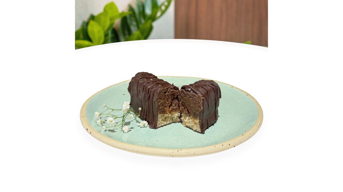 Baton vegan din făină de ovăz, făină de migdale, curmale, sirop de agave, unt de arahide, învelit în ciocolată neagră 54% - 120g