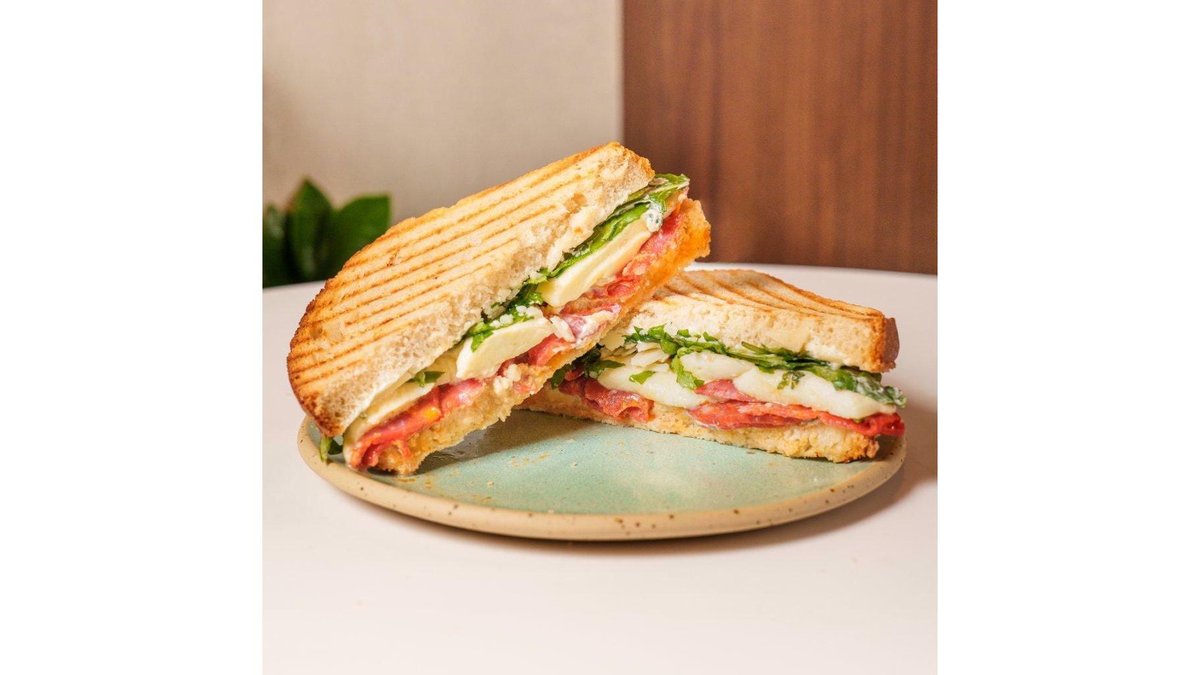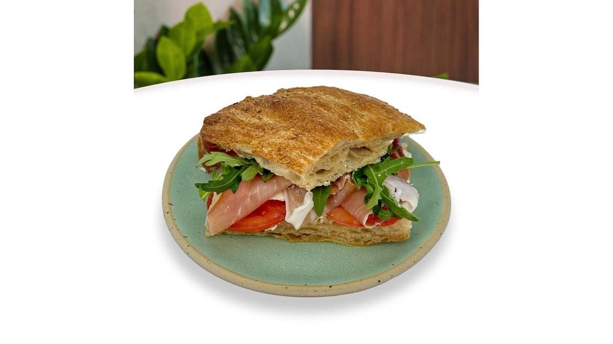 Focaccia, cremă de brânză Philadelphia, mozzarella, roșii, prosciutto crudo, rucola - 270g Alergeni: lapte, gluten, soia