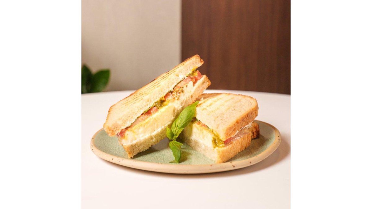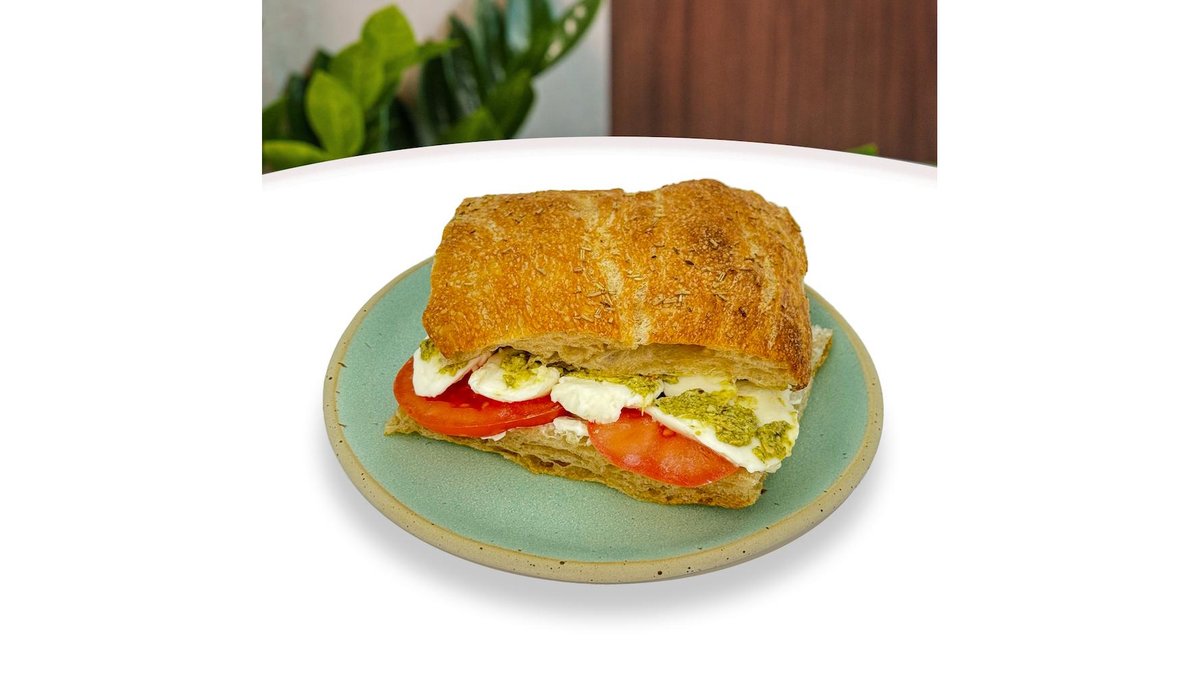 Focaccia, cremă de brânză Philadelphia, pesto, mozzarella, roșii, busuioc, oregano, sare, piper - 230g Alergeni: lapte, gluten, soia