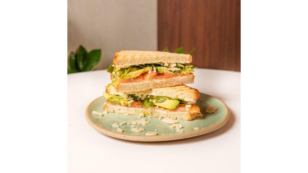 Pâine cu maia din faină integrală de grâu, cremă de brânză Philadelphia, somon, avocado, rucola, parmezan - 240g