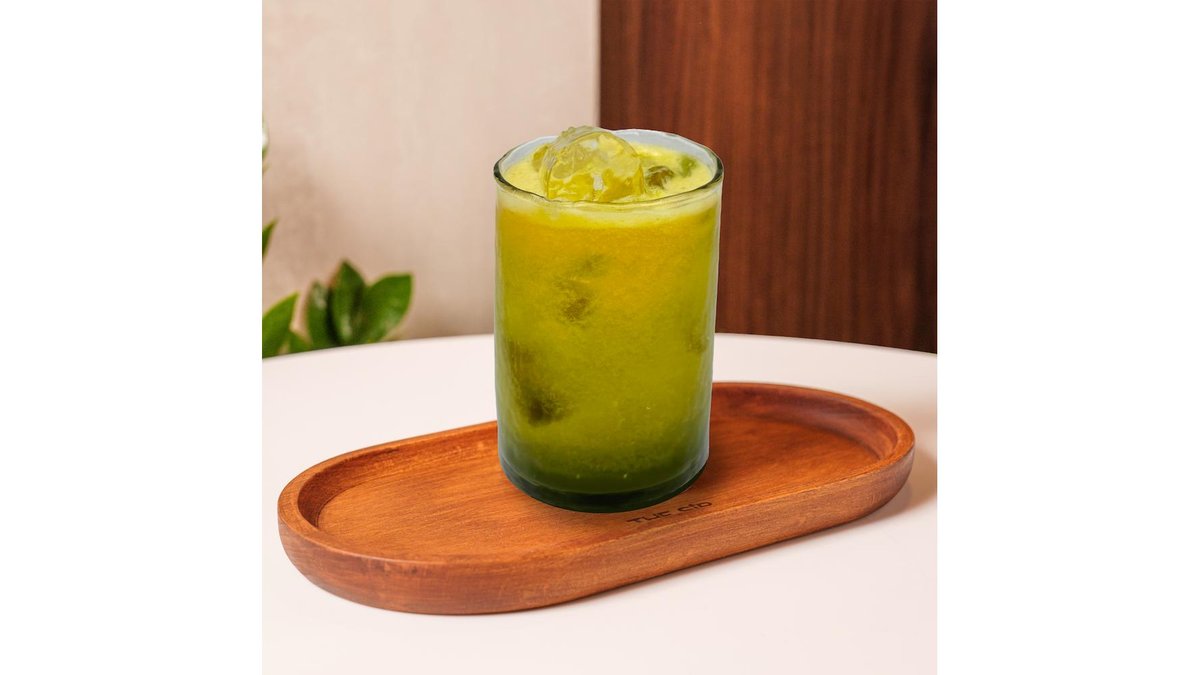 Suc de portocale proaspǎt stoarse, matcha, gheațǎ - 330ml