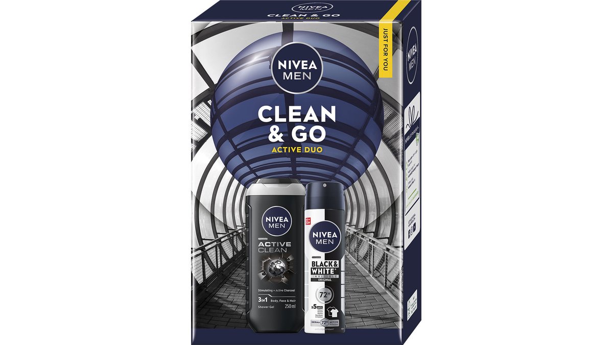 Set pentru cadou Nivea Men Clean&Go: deodorant spray 150ml si gel de dus 250ml