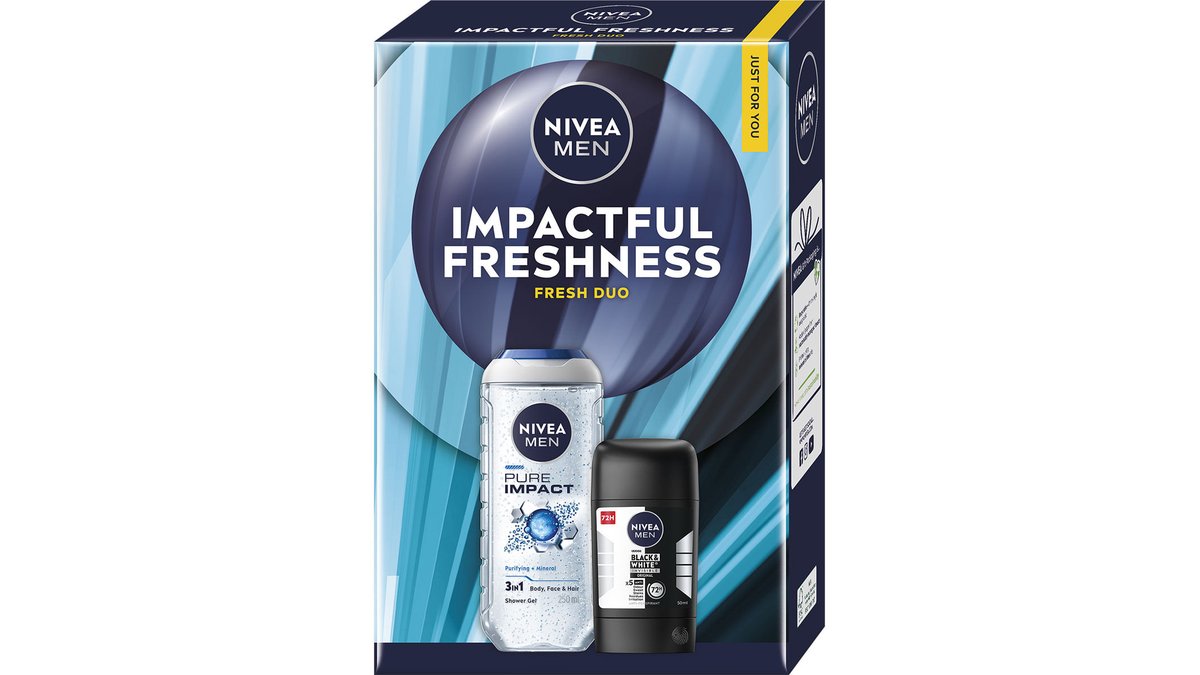 Set pentru cadou Nivea Men Impactful Freshness: gel de dus 3-in-1 250ml si deodorant stick 50ml