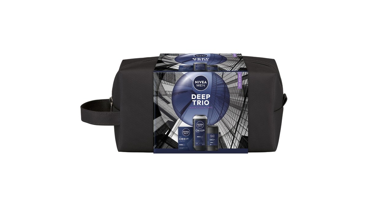 Set pentru cadou Nivea Men Deep Trio: lotiune dupa ras 100ml, gel de dus 250ml si deodorant Stick 50ml