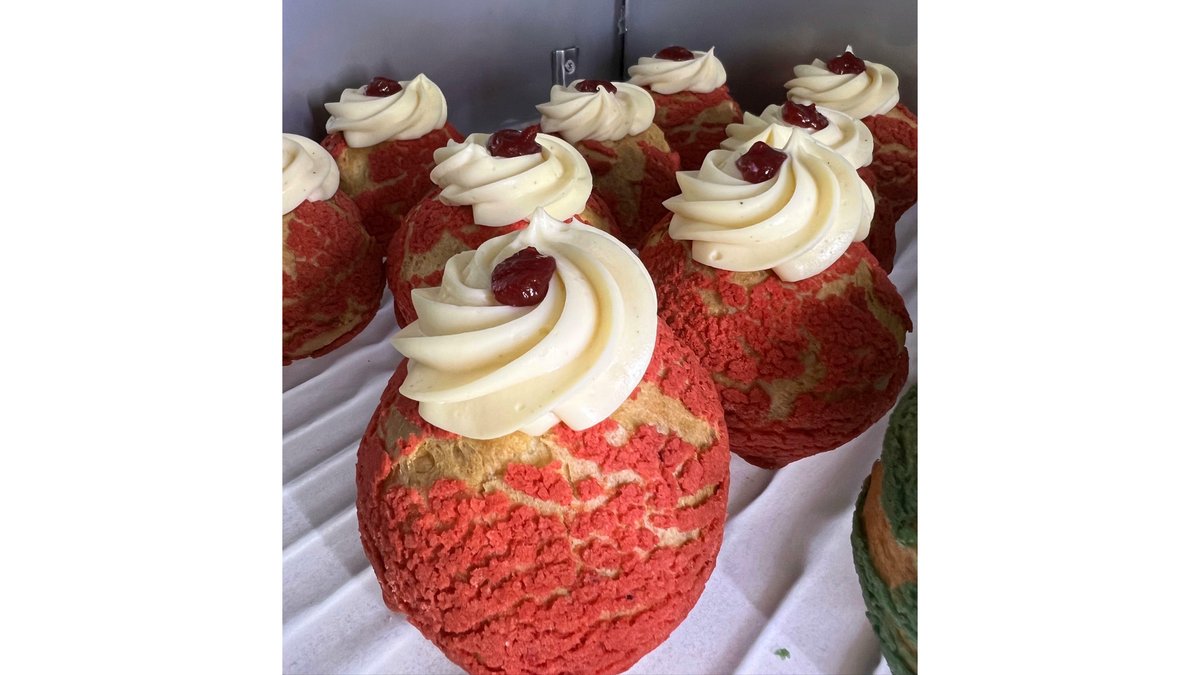 Aluat de choux, craquelin, crema de vanilie si insertie de capsuni