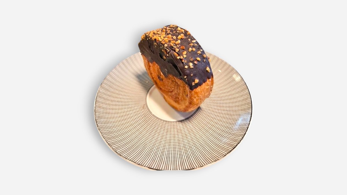 NY Roll's umplut cu crema de ciocolata fondanta,ornat cu ciocolata fondanta si granule de alune de padure