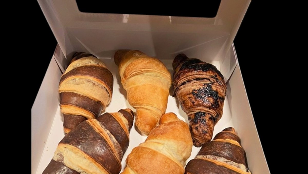 Box 6 croissante puse aleatoriu (Croissant cu crema vanilie,ciocolata alba si ciocolata cu alune,ciocolata fondanta si caise,mango,caramel sarat,Amarena,împletitura cu crema de vanilie)