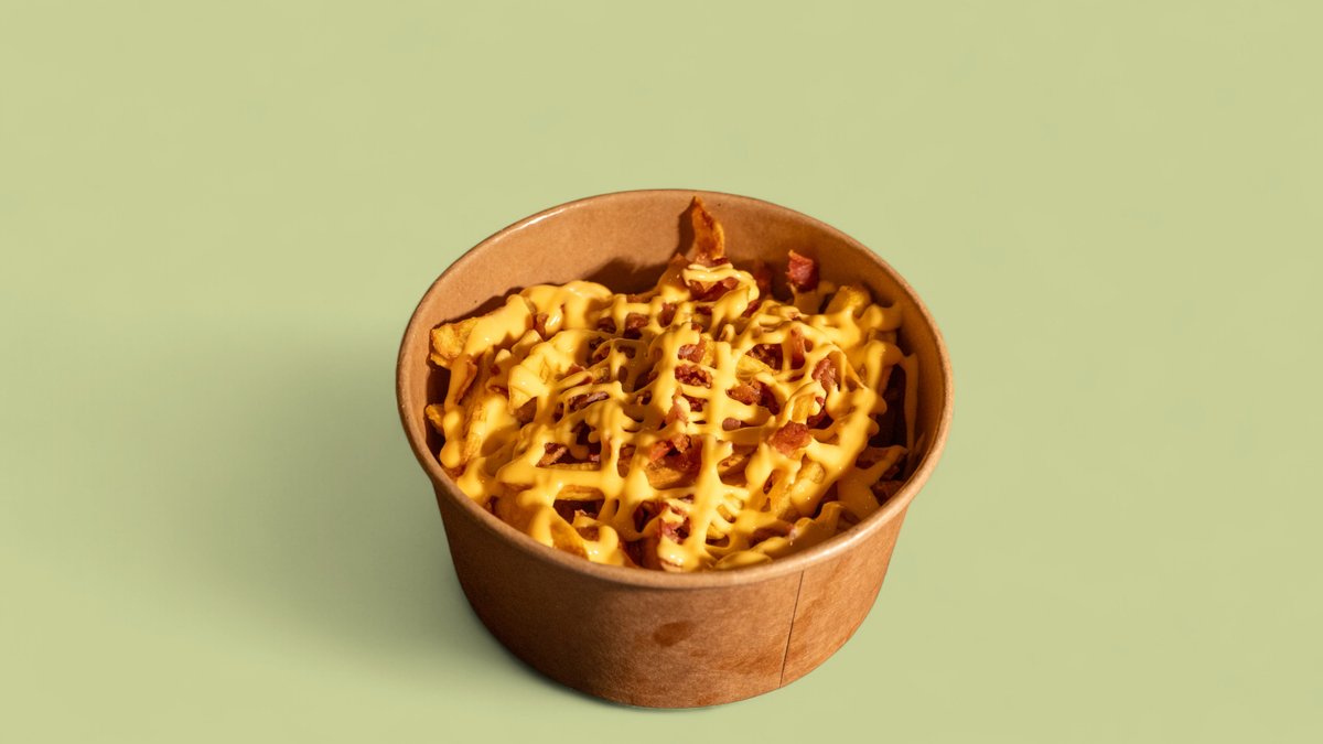 Cartofi 200g, sos cheddar 70g, bacon 30g Fries 200g, cheddar sauce 70g, bacon 30g