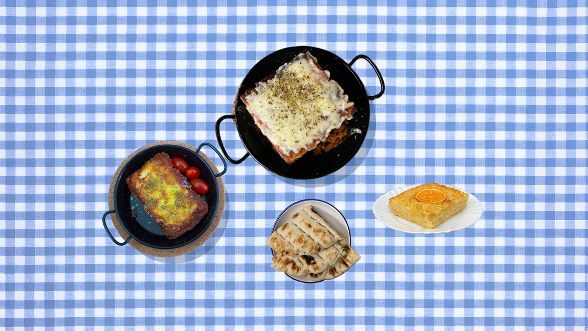 feta saganaki + moussaka de casa + mini portokalopita, 1/2 pita greceasca