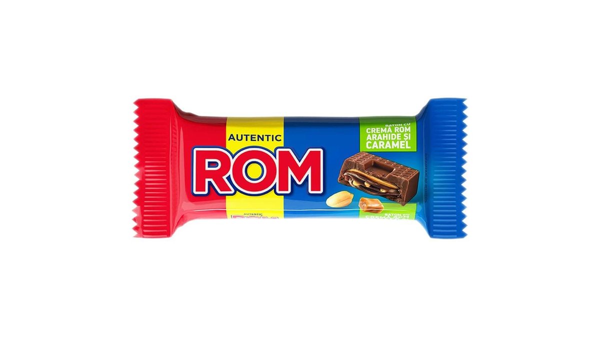 Rom Autentic Baton de ciocolata alba cu crema de caramel sarat, rom si arahide 44g