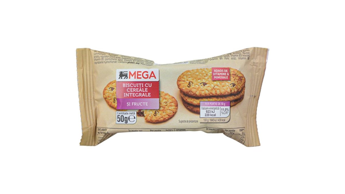 MEGA Biscuiti cu cereale integrale si fructe 50g