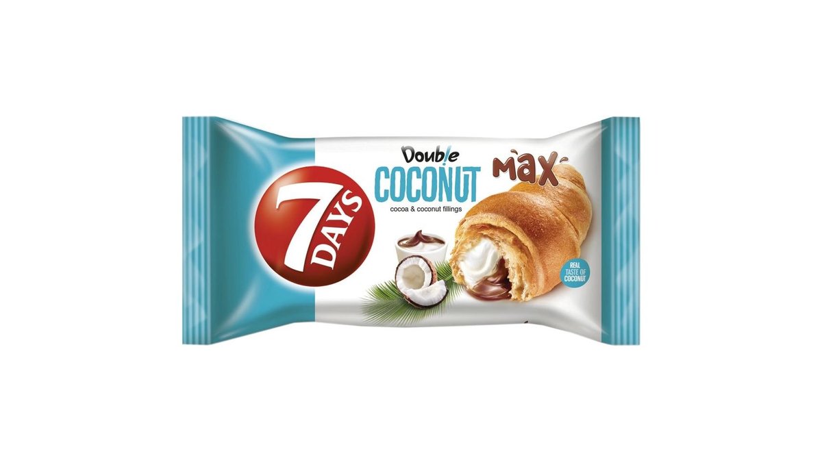 7Days Double Croissant cu umplutura cu cacao si nuca de cocos 80g
