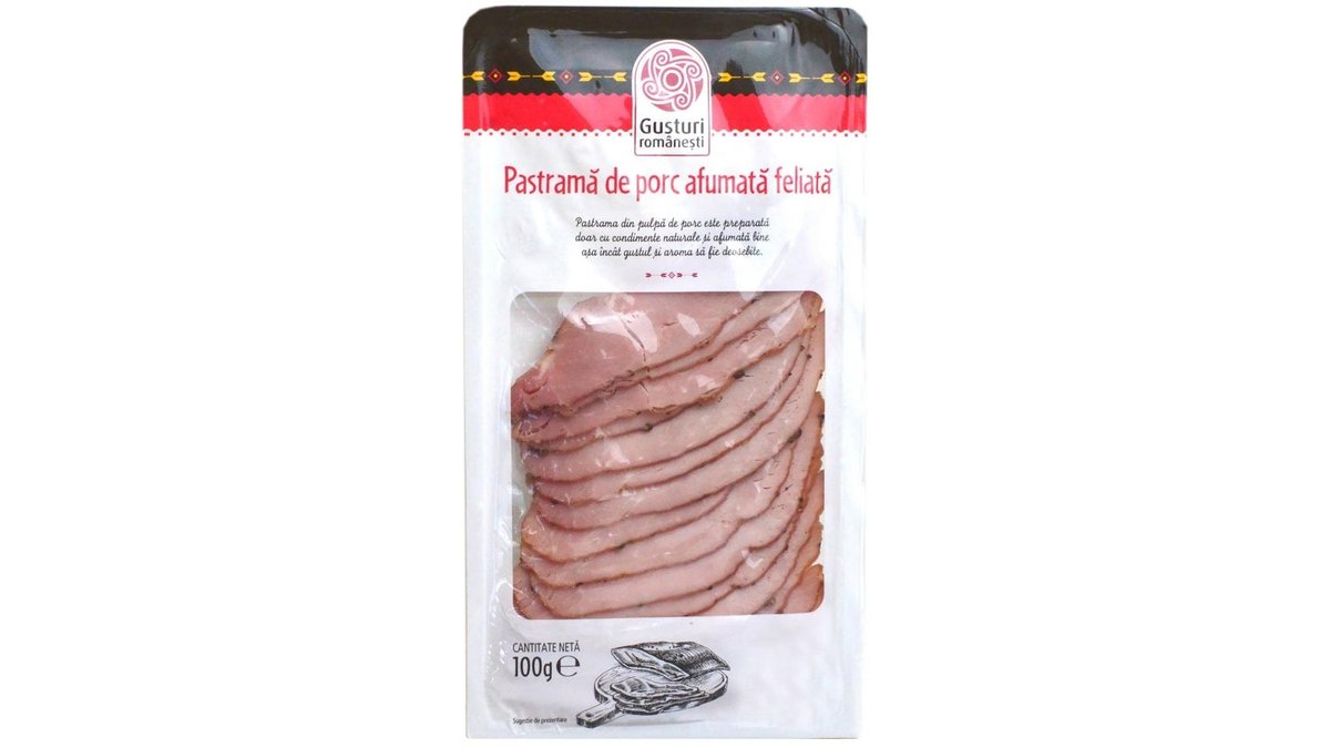 Gusturi romanesti Pastrama de porc afumata feliata 100g