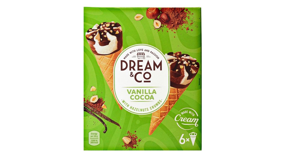 Dream&Co Inghetata cu vanilie, cu cacao si bucati de alune de padure 6x120ml