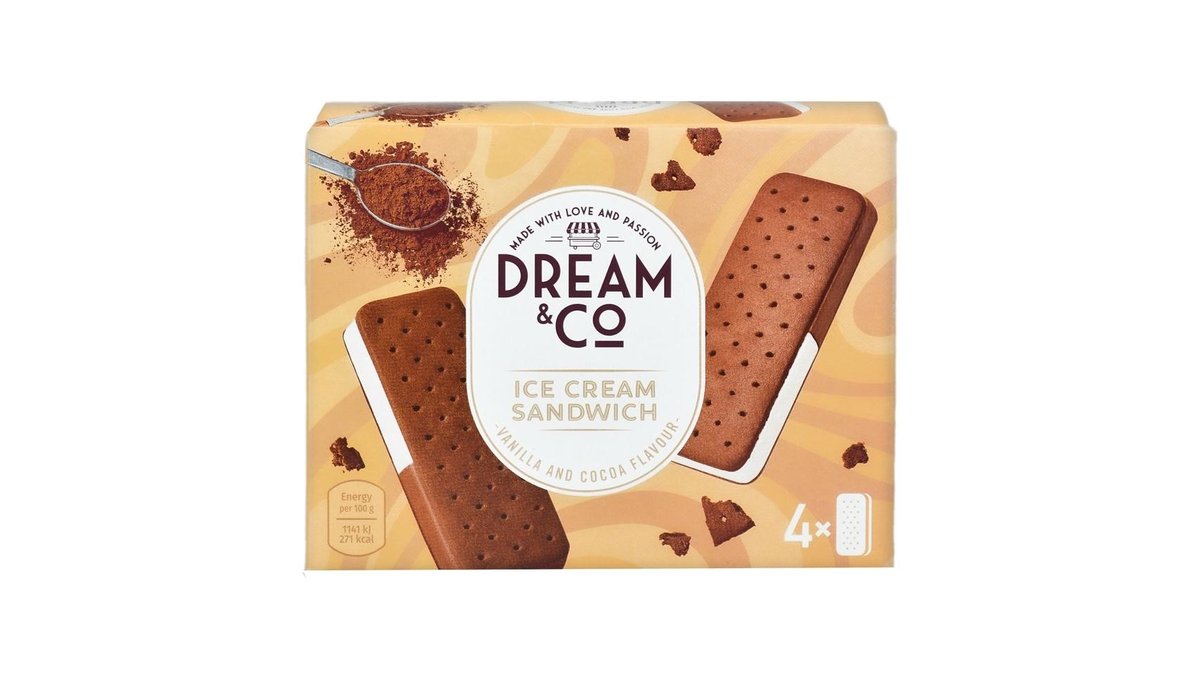 Dream&Co Inghetata sandwich cu aroma de vanilie si cacao 4x80g
